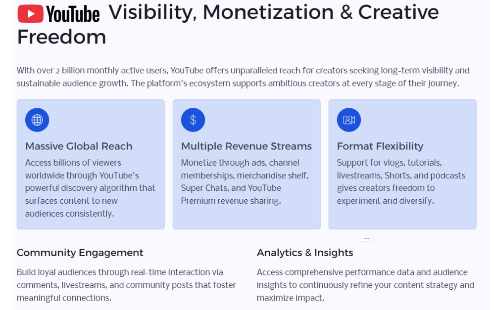 YouTube® is best for discoverability, long-form authority and TV/lean-back consumption.