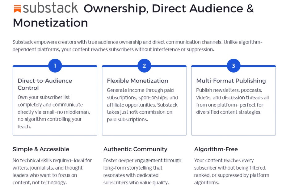 Substack® is best for owning your audience, monetization control, and automated repurposing.